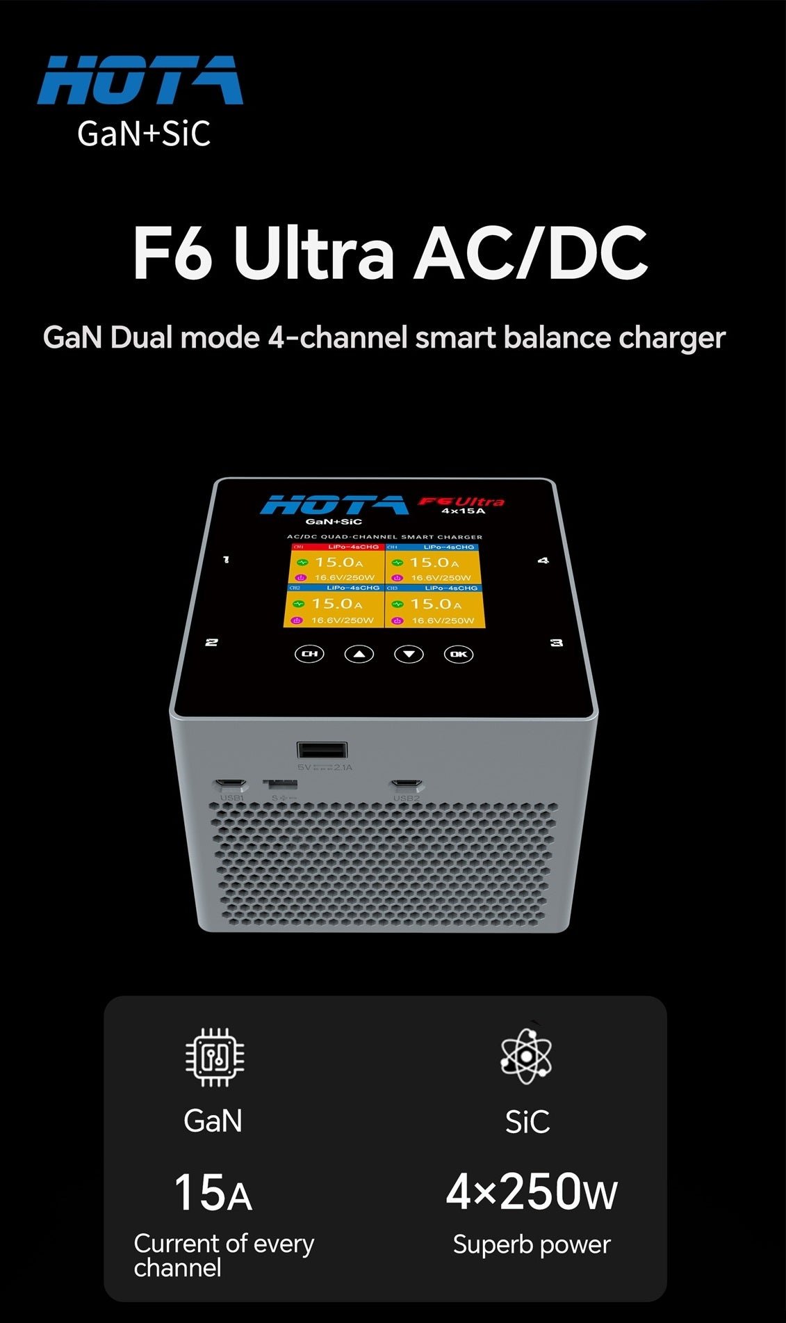 HOTA F6 Ultra Quad Channel AC/DC Smart Charger