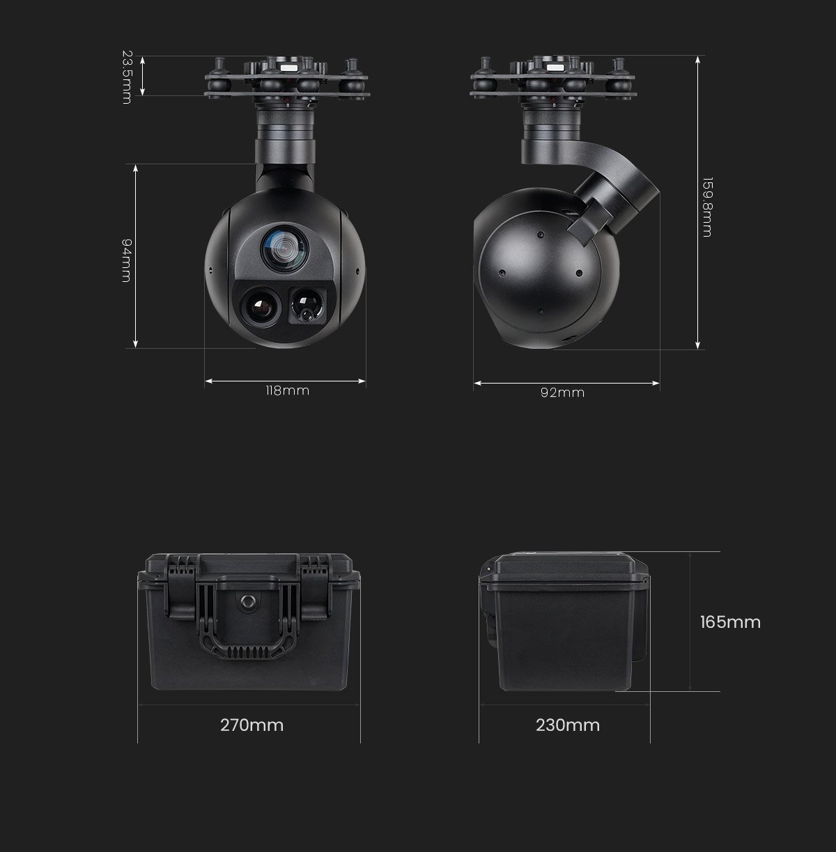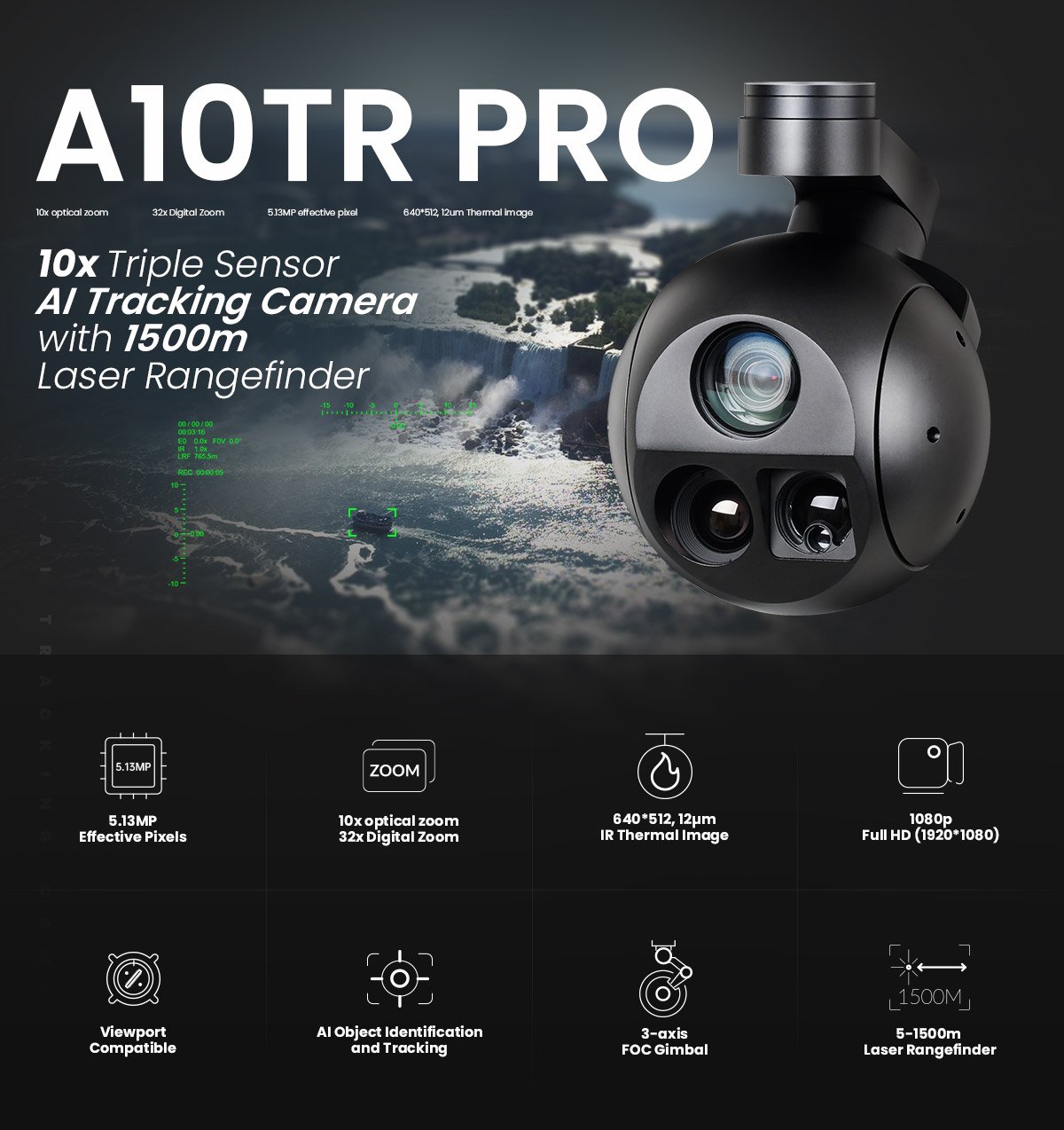 At its core, the A10TR Pro features a 10x optical zoom EO camera with a Panasonic CMOS sensor. This sensor captures sharp Full HD 1080p video with incredible detail even from a distance. Furthermore, the 19mm lens thermal sensor offers a 640×512 resolution for heat signature detection. This allows for effective search and rescue or infrastructure inspection in low-visibility conditions. To complete the suite, the integrated 1500m laser rangefinder measures target distances with high accuracy. These sensors work in harmony to deliver actionable data in real-time.